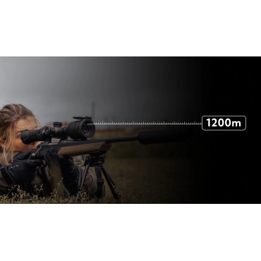 Zaawansowany dalmierz laserowy zapewnia pomiar dystansu do 1200 m z dokładnością do 1 metra. W połączeniu z kalkulatorem balistycznym obsługującym wiele kalibrów, myśliwy otrzymuje wiarygodne wsparcie nawet w najbardziej wymagających warunkach.