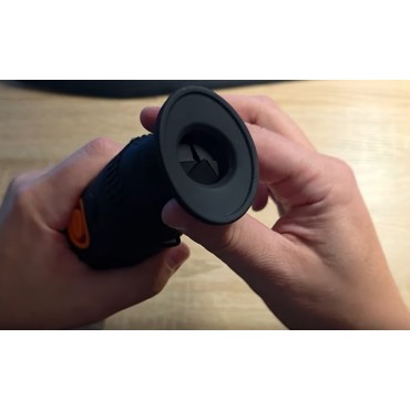 Chroni oczy i okular urządzenia, a samozamykająca się muszla zapobiega ucieczce światła. Dzięki temu nie musisz się stale martwić, że zostaniesz zauważony przez zwierzynę. Lekkim naciśnięciem muszla oczna otwiera się, umożliwiając komfortową obserwację. Gdy urządzenie oddala się od oka, muszla zamyka się automatycznie.