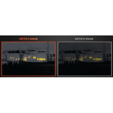 Dzięki wyjątkowo niskiej wartości NETD ≤ 15 mK możliwe jest wykrycie nawet najmniejszych różnic. Jest to szczególnie przydatne w letnie upały, gdy różnice temperatur między zwierzyną łowną a otoczeniem są znacznie mniejsze, lub przy wysokiej wilgotności powietrza. Najdrobniejsze szczegóły obiektów i tła można łatwo i wyraźnie zidentyfikować, np. sierść zwierząt, cechy fizyczne samców, samic lub zwierząt ciężarnych, gałązki, liście itp.