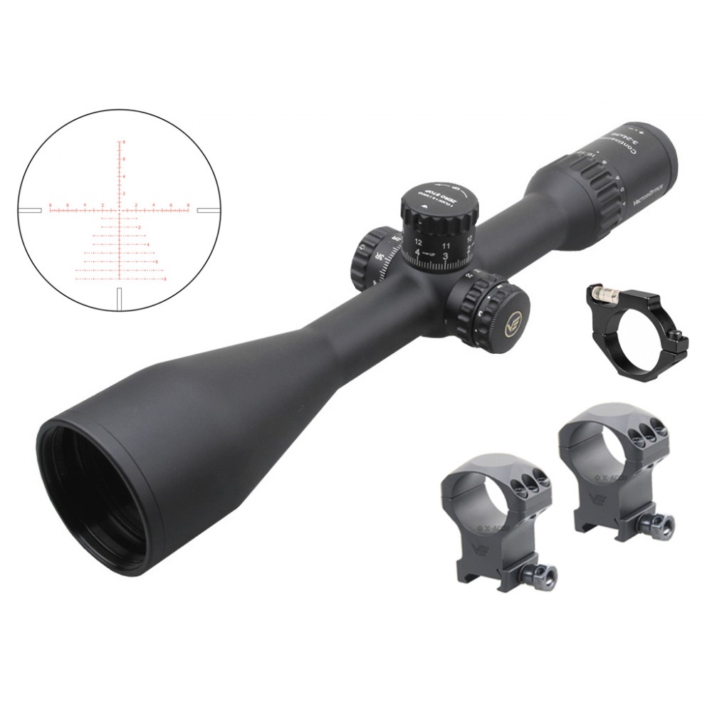 Vector Optics Continental x8 3-24 SFP Zero Stop to luneta celownica przeznaczona dla wymagających myśliwych i strzelców. Dysponuje zmiennym powiększeniem w zakresie 3-24x i obiektywem 56 mm. Producent wyposażył celownik w podświetlany znak celowniczy typu VCT-20A osadzonego na drugim planie (SFP). Układ soczewek FMC Diamond Clear VePRO Disperse zapewnia jasny i ostry obraz.