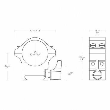 - Montaż dwuczęściowy przeznaczony do tubusów o średnicy 30 mm