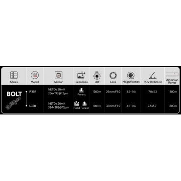 Kompaktowa konstrukcja o wadze jedynie 880 gramów sprawia, że BOLT idealnie sprawdza się jako podstawowa luneta termowizyjna. Niezawodny i poręczny - idealny zarówno dla młodszych myśliwych, jak i dla osób starszych, które szukają prostego i skutecznego sprzętu.